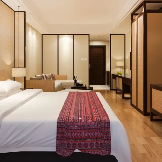 standard to luxury suites, equipped with essentials like beds.